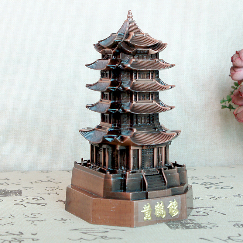 包邮金属黄鹤楼模型摆件复古合金工艺武汉旅游纪R念品建筑家居摆