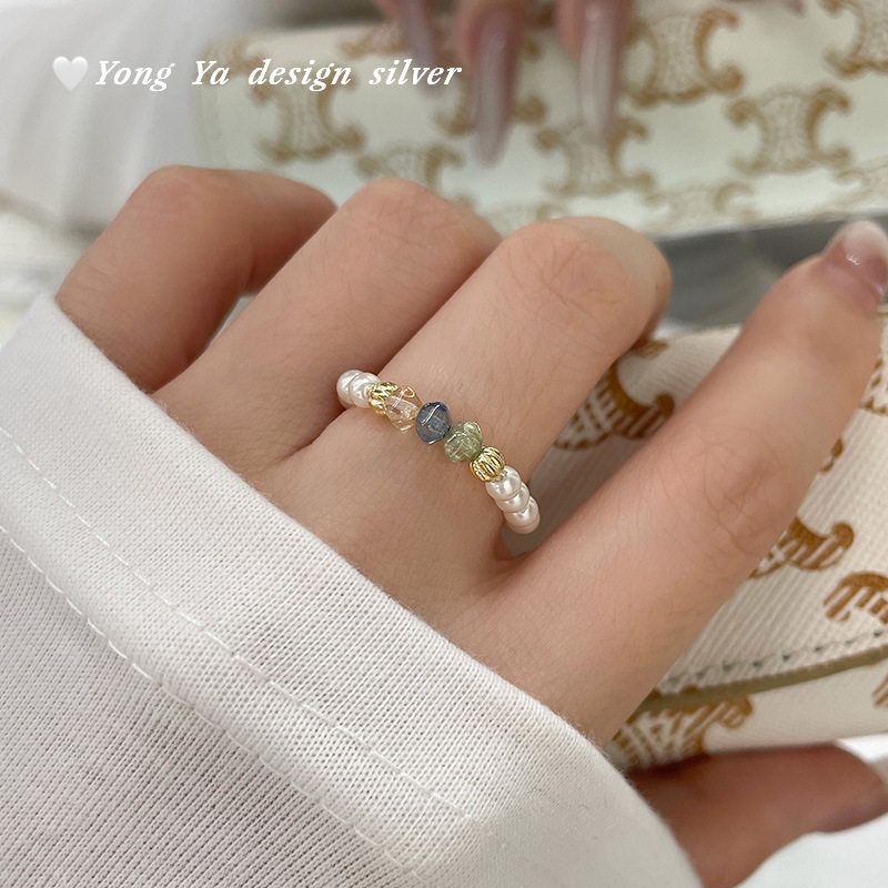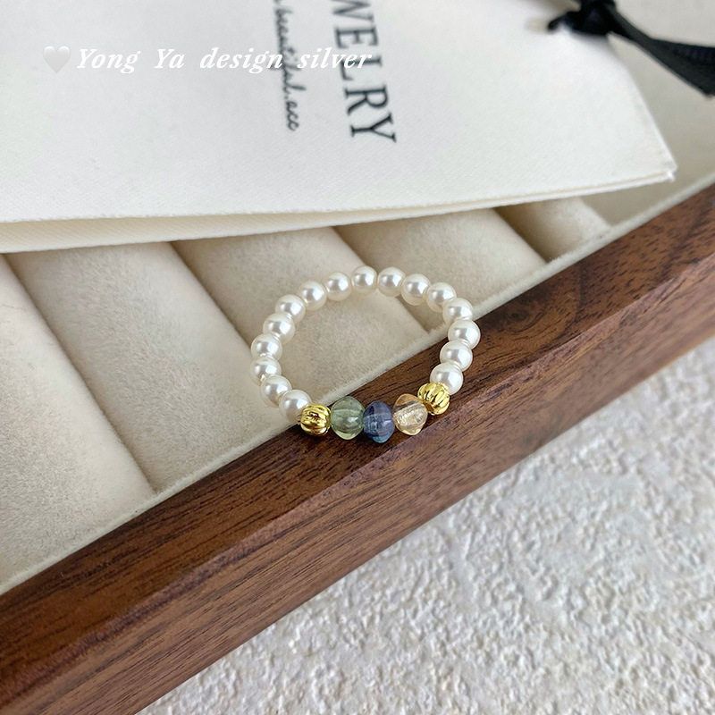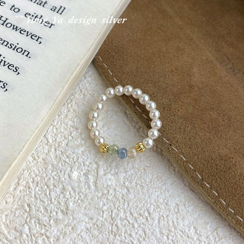 S925纯银彩珠珍珠戒指夏季多巴胺法式文艺温柔风韩式手饰气质代发