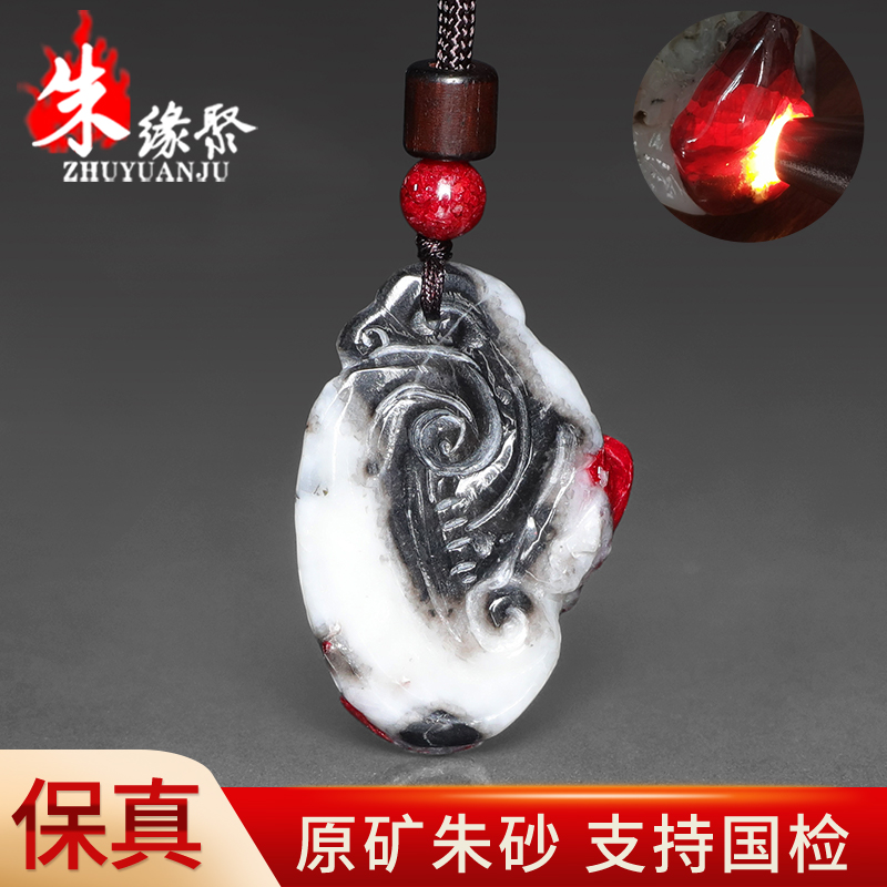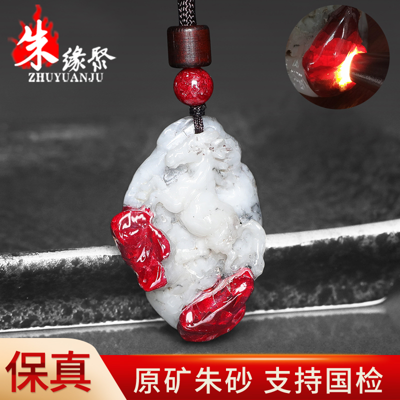 朱缘聚朱砂吊坠女士正品官方旗舰店原矿晶体石全透光生肖马挂件男