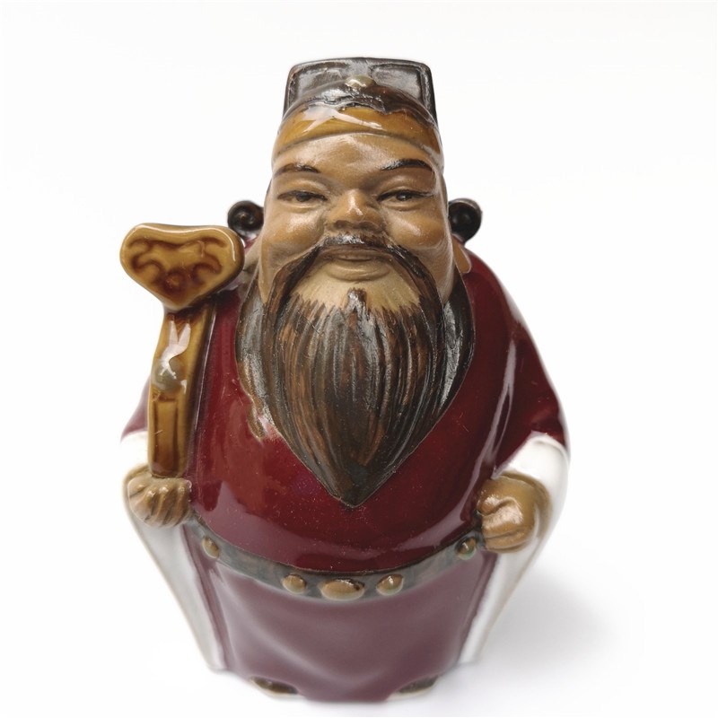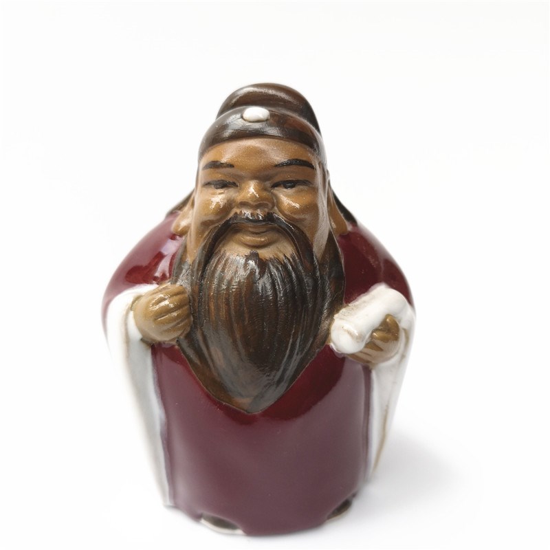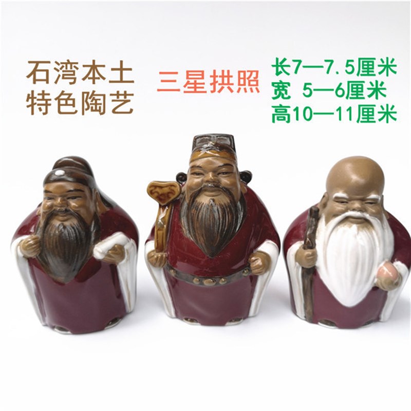 石湾陶瓷如意公仔人物美术工艺品装饰摆件红釉财神福禄寿三星送礼