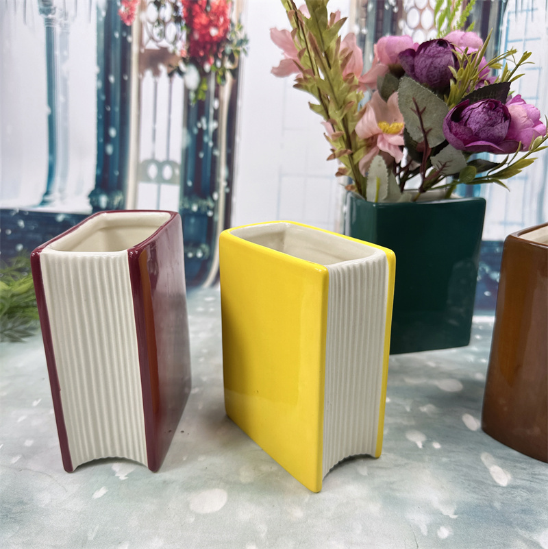 出口陶瓷个性手绘设计书本造型花瓶工具桶笔桶纸巾桶家居装饰摆件