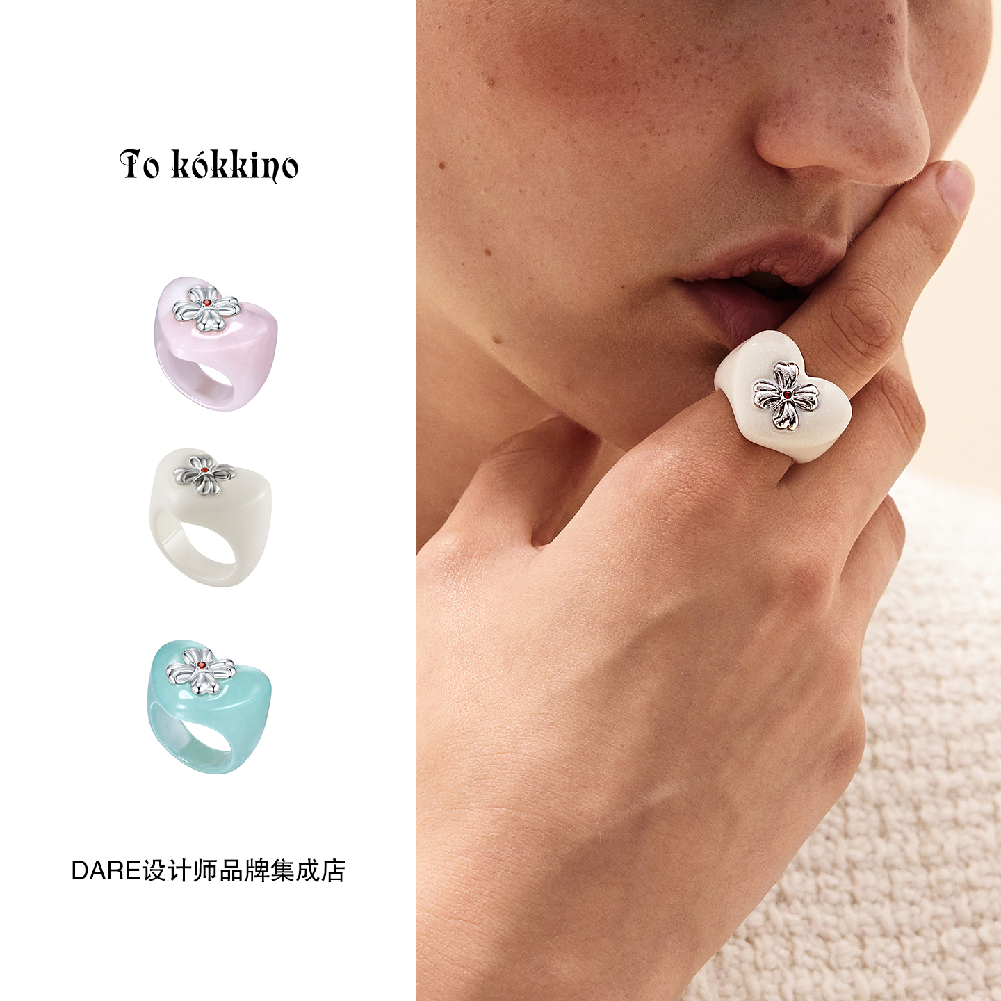 Dare买手店 tokokkino正品 爱心亚克力戒指复古原创饰品小众度假