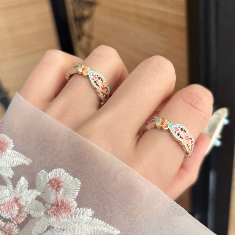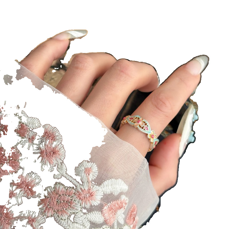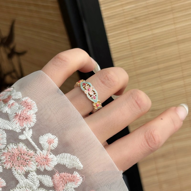 新款法式宫廷风珐琅繁花鸢尾花戒指高级感彩色滴油花朵指
