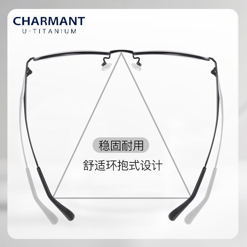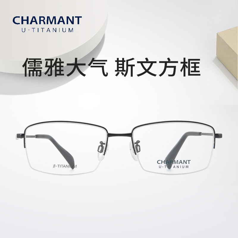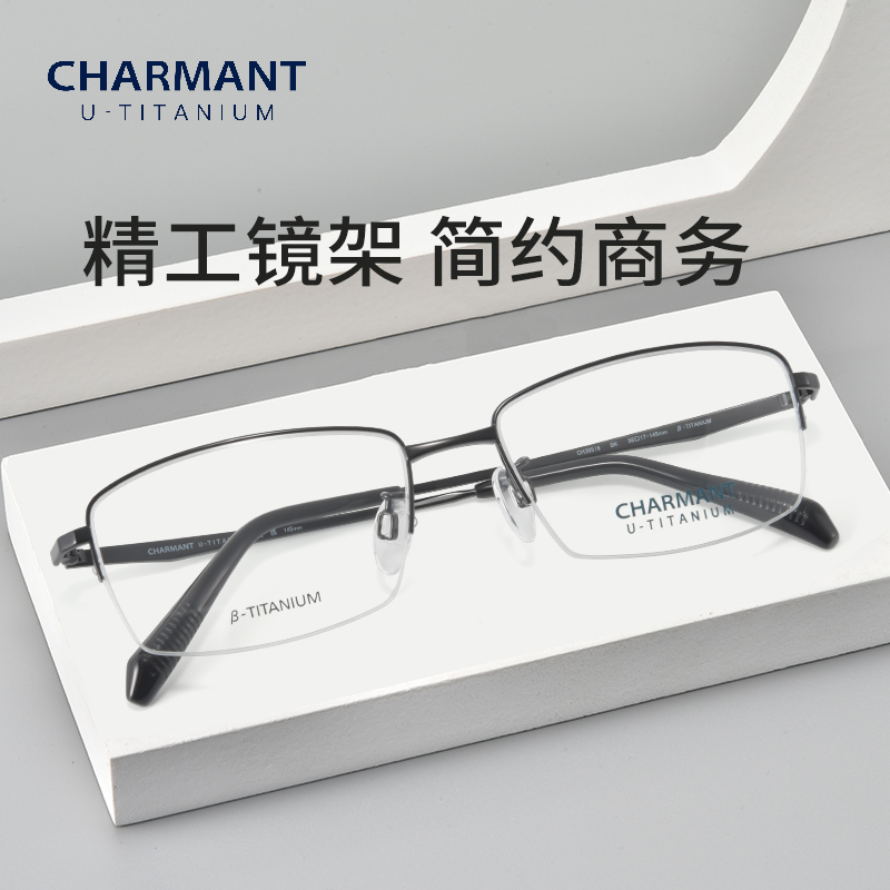 CHARMANT夏蒙商务光学半框眼镜框β钛眼镜架可配近视镜片CH38516