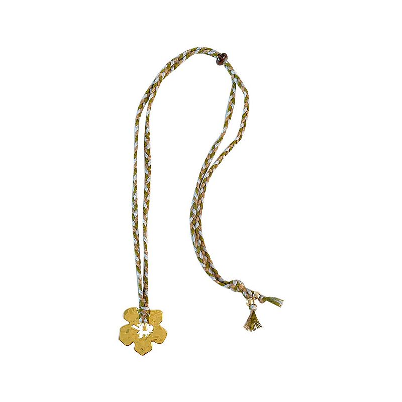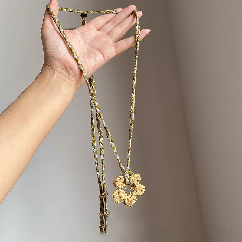 扶桑花~ins博主同款复古金色花朵穿绳项链个性时尚度假风编织颈链