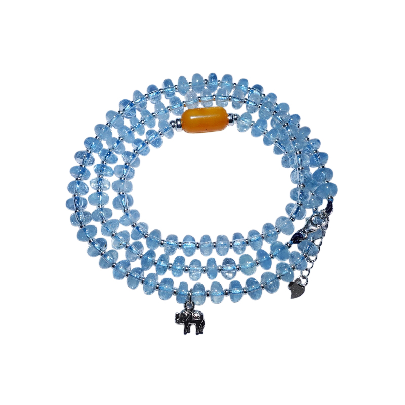 原创天然精品海蓝宝水晶108佛珠手链蓝色宝石多圈黄水晶手饰项链