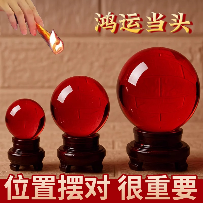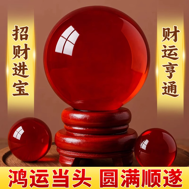 大号鸿运珠开业鸿运当头红色透明水晶球百福缸祝福摆件聚宝盆招财