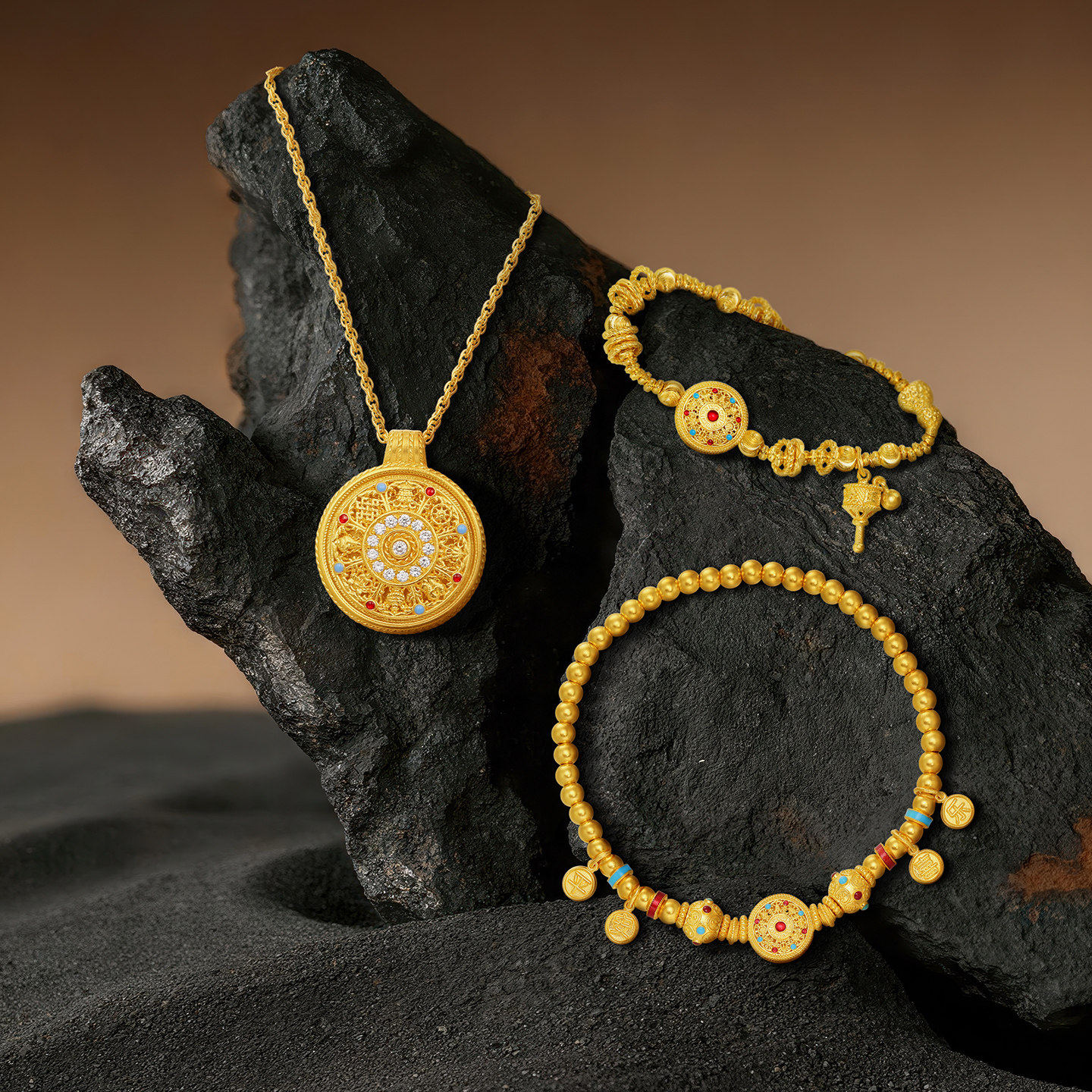 潮宏基臻金八宝罗盘黄金手链足金手串手饰古法盘缠金鎏彩礼物 卟