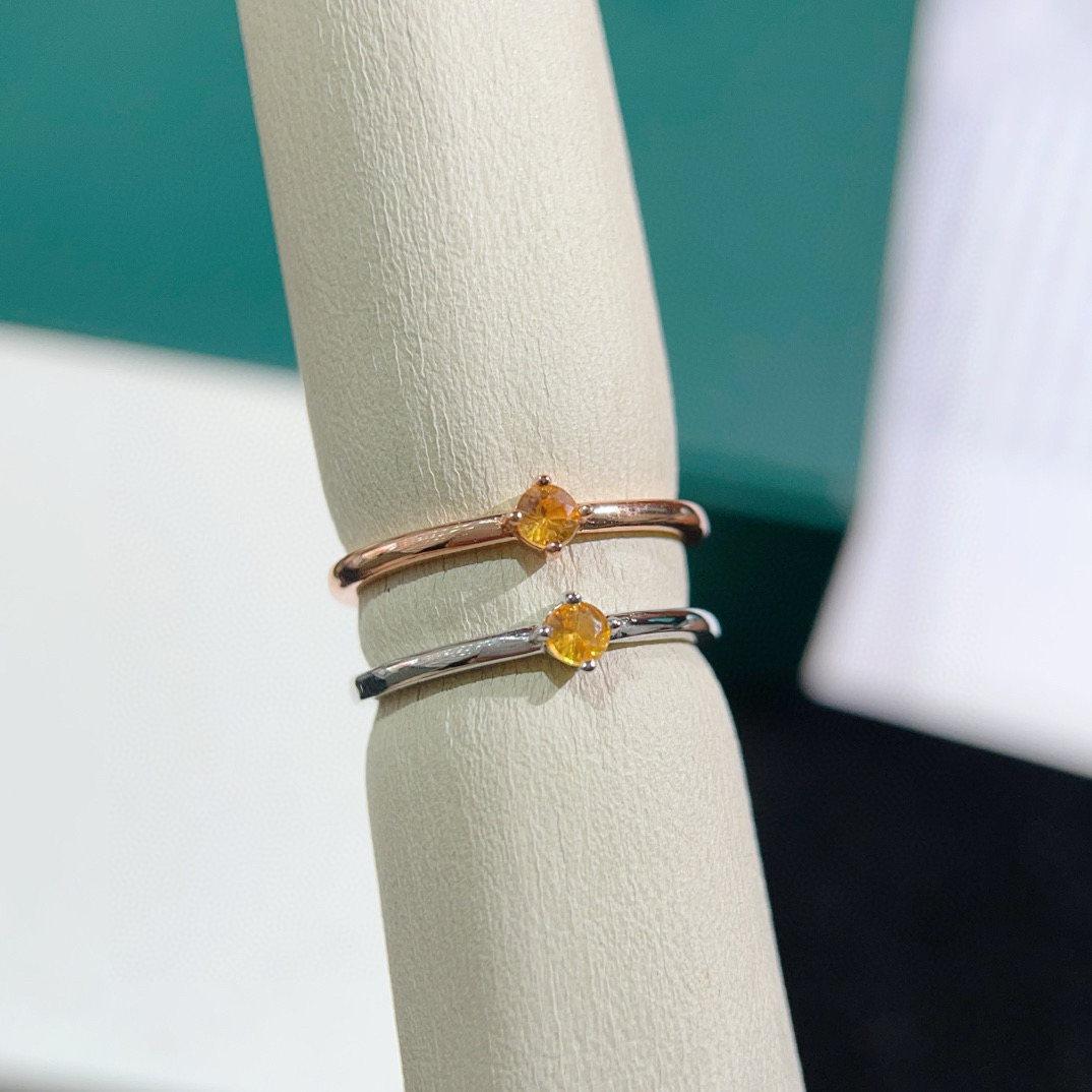 925纯银镀金时尚简约百搭银饰精工打造戒指空托圆形尾戒女戒指