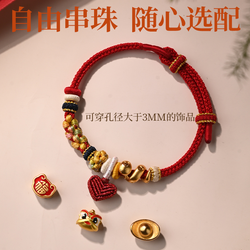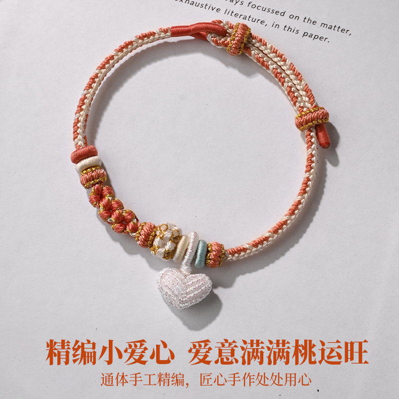 桃花结手链女可穿转运珠手绳黄金手工编织diy小爱心手绳成品红绳