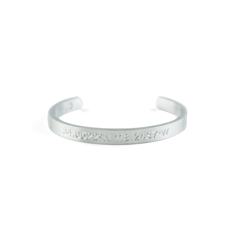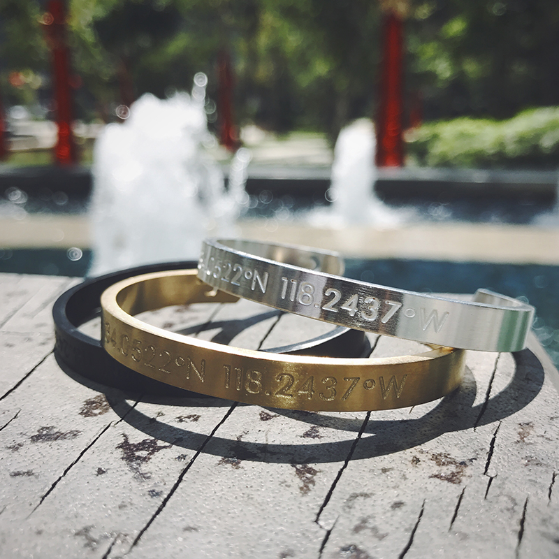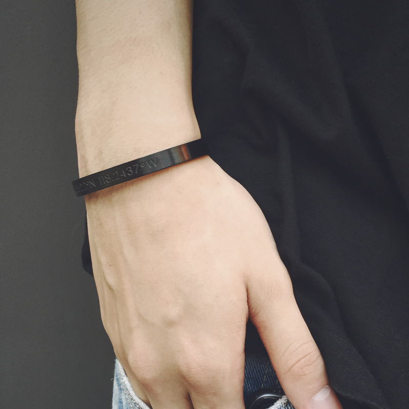 欧美个性嘻哈经纬度手镯男潮开口字母情侣首饰钛钢不褪色小众设计