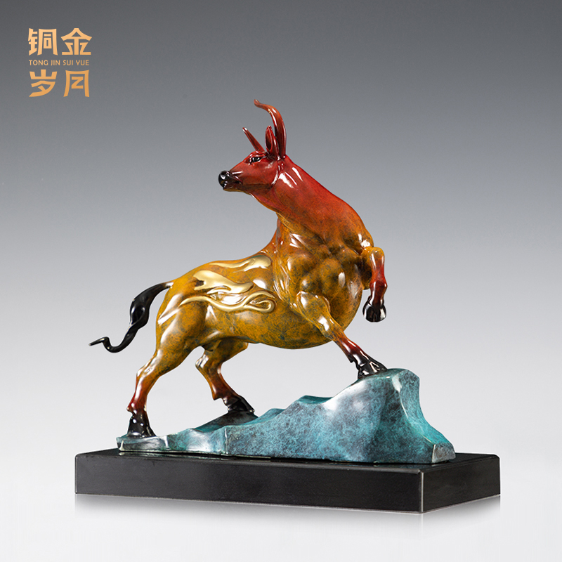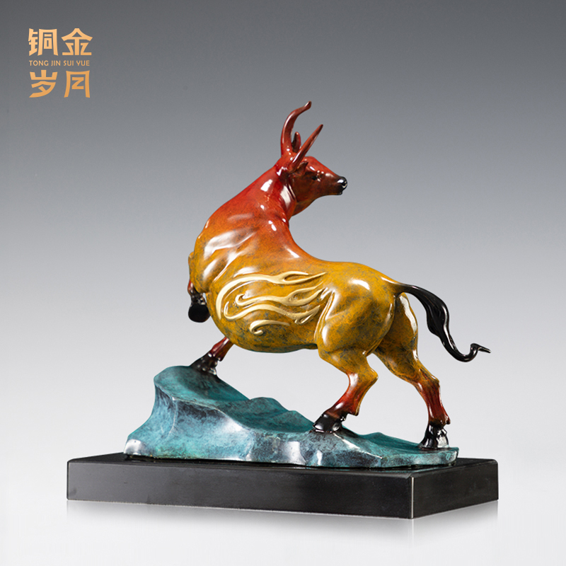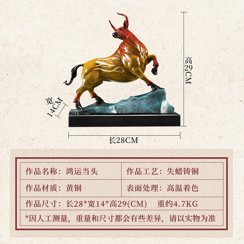 《鸿运当头》铜金岁月全黄铜牛摆件工艺品铜器客厅办公室桌面装饰