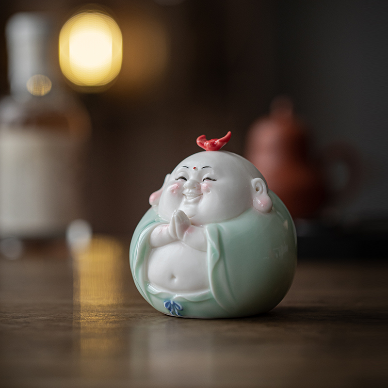 创意陶瓷大肚弥勒佛摆件可爱招财笑佛家居客厅办公桌面装饰工艺礼