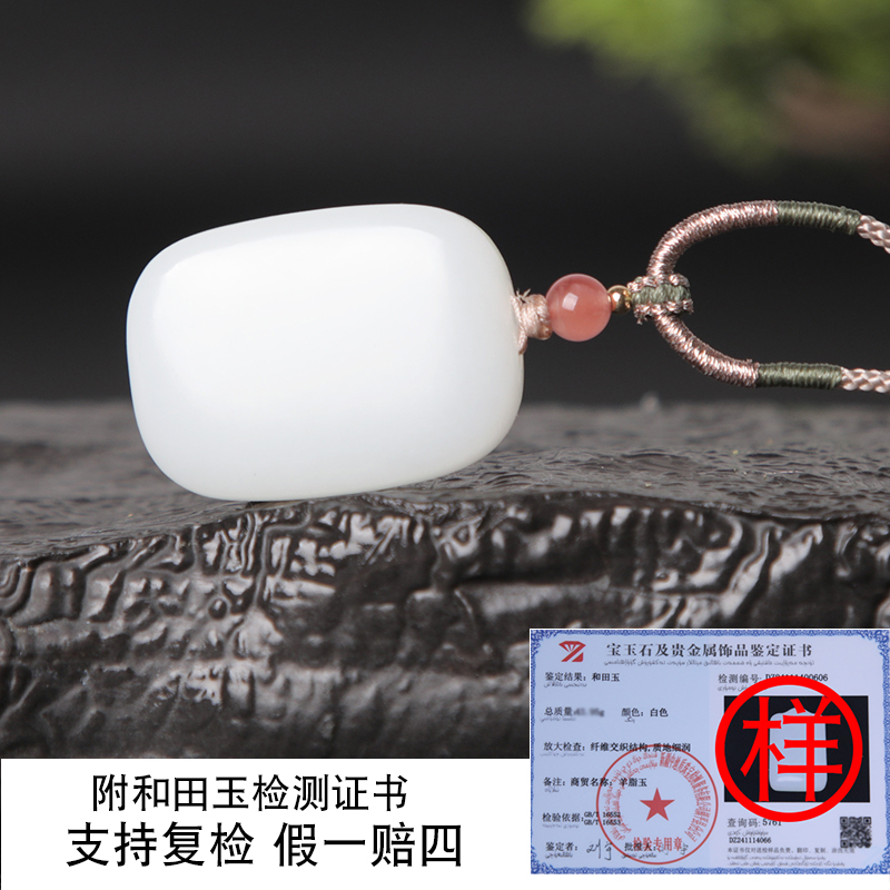 珪宝和田玉羊脂玉平安无事牌吊坠男女款玉项链天然玉石带证书礼物