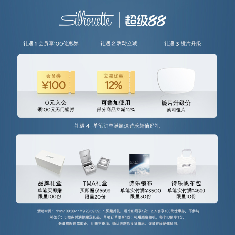 Silhouette诗乐眼镜架方框超轻男女款光学可配度数近视眼镜 2884