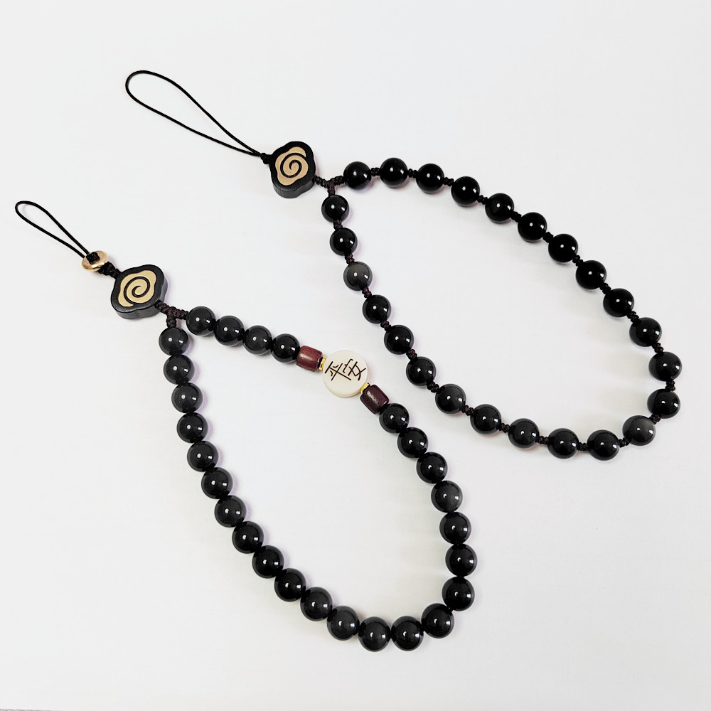 星月菩提手机链挂件 黑曜石手机链吊坠挂绳情侣短款男女款送闺蜜