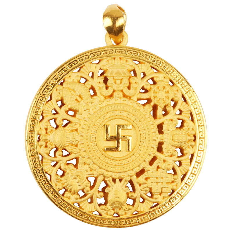 黄金吊坠999足金佛家八宝吉祥万字 送挂绳项链3D硬金男女款礼物