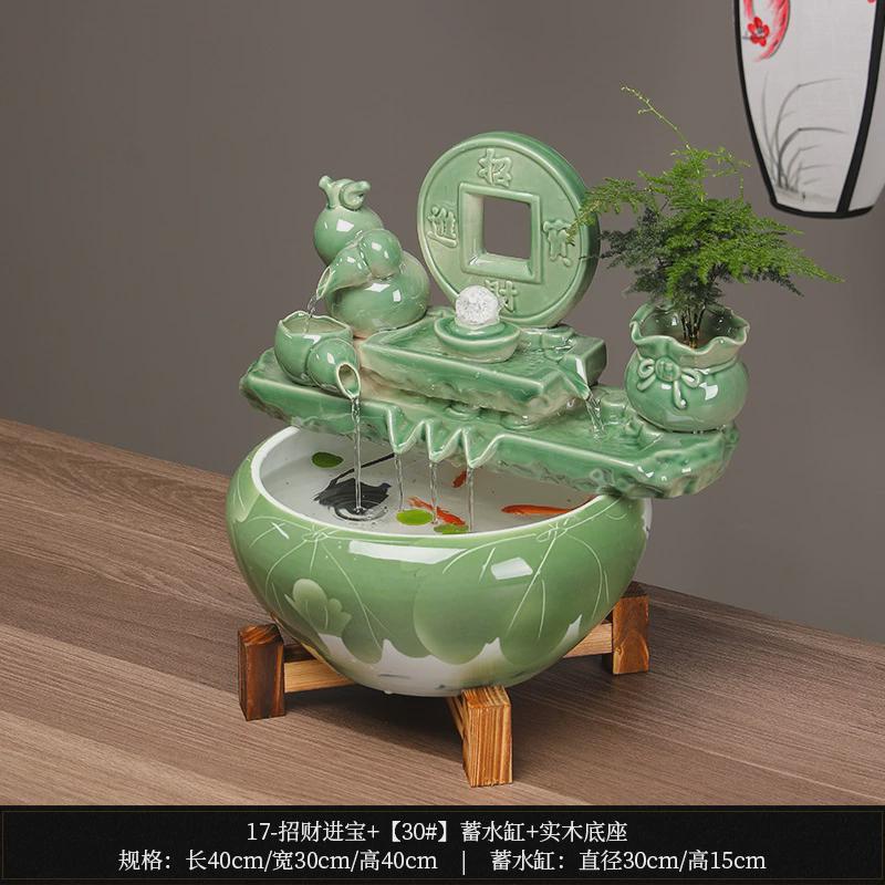 陶瓷鱼缸流水摆件喷泉家用小金鱼缸大号养鱼盆客厅加湿装饰品造景