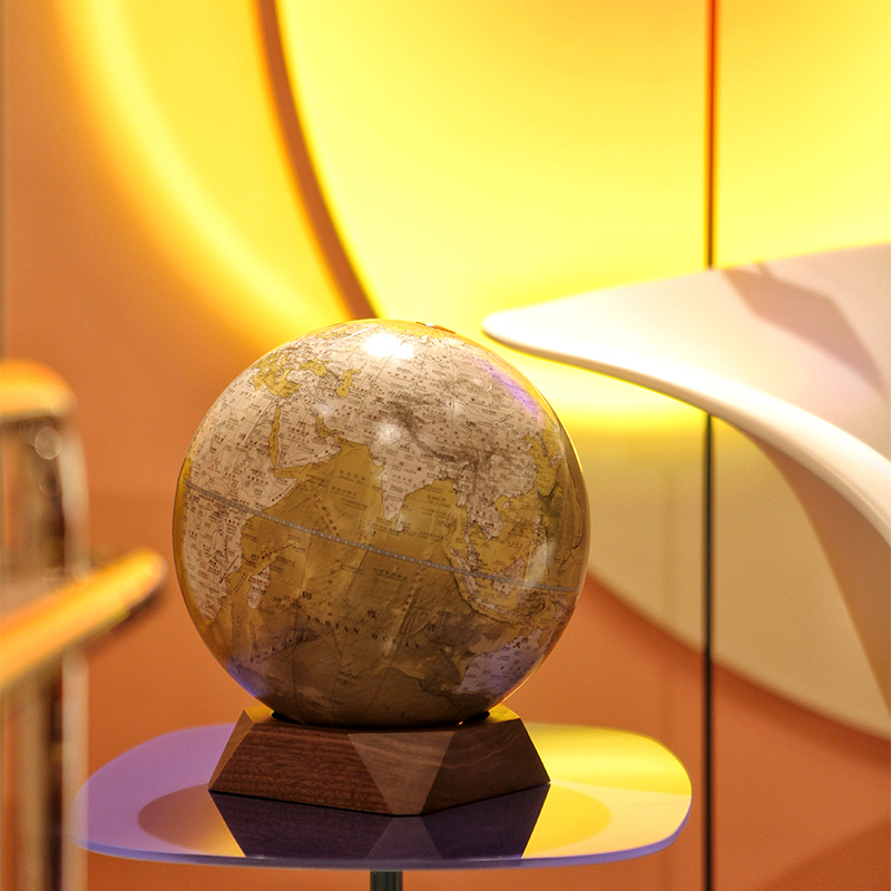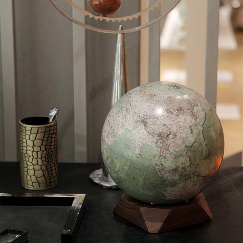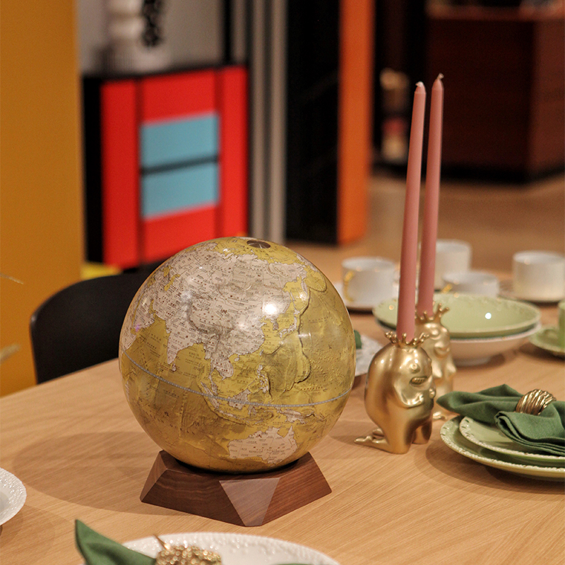 方形实木底座宏微地球仪轻奢桌面摆件客厅书房玄关装饰生日礼物