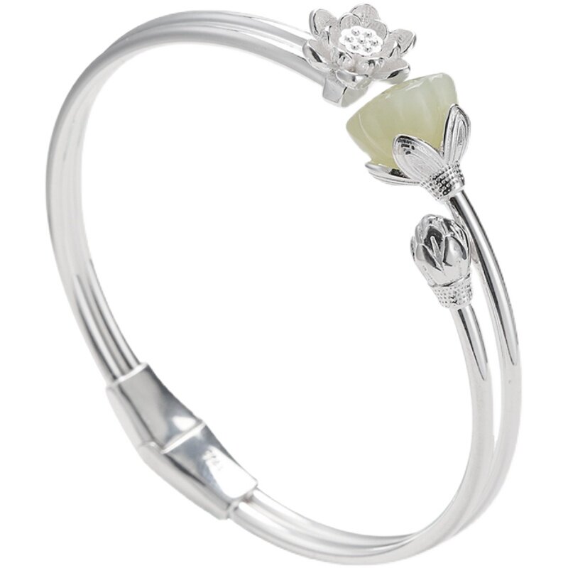 沉香如屑步离镯不离925银镶和田玉石翡翠复古中式汉服旗袍手镯环