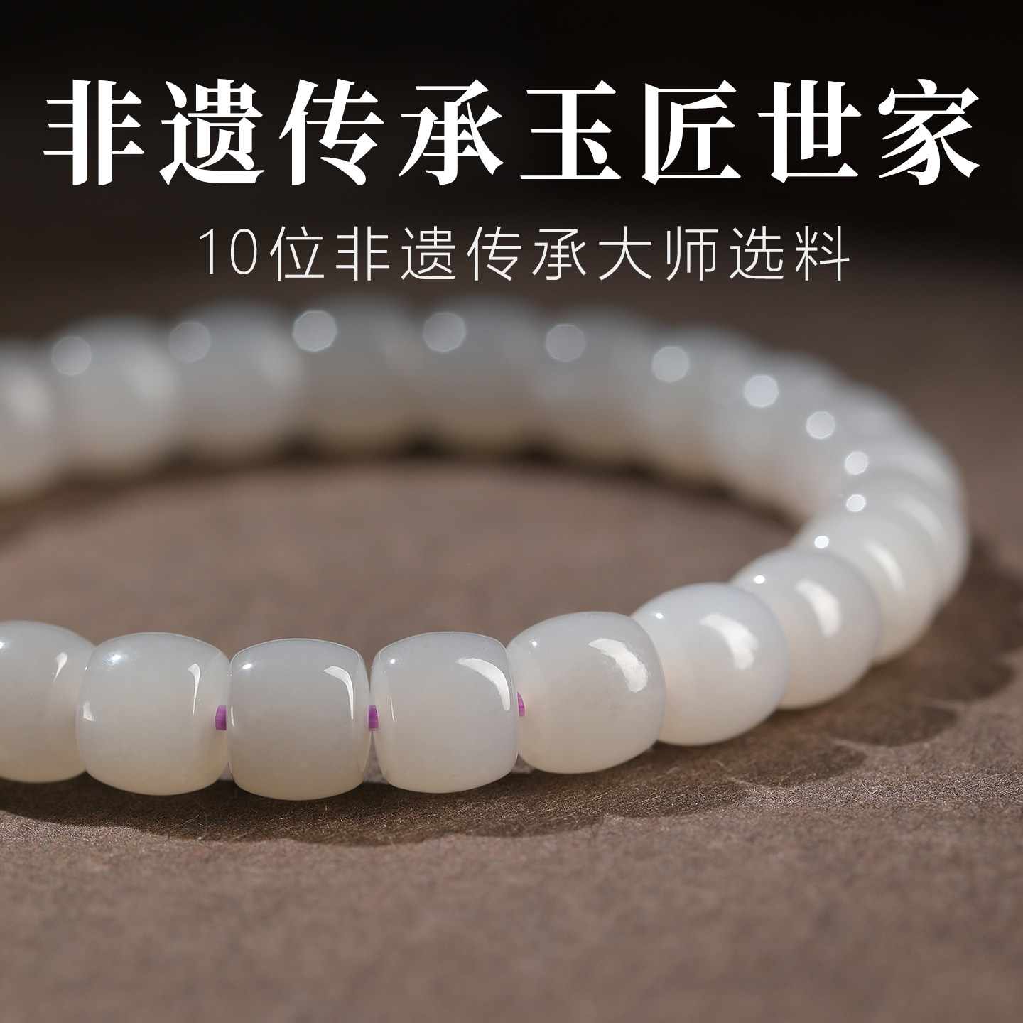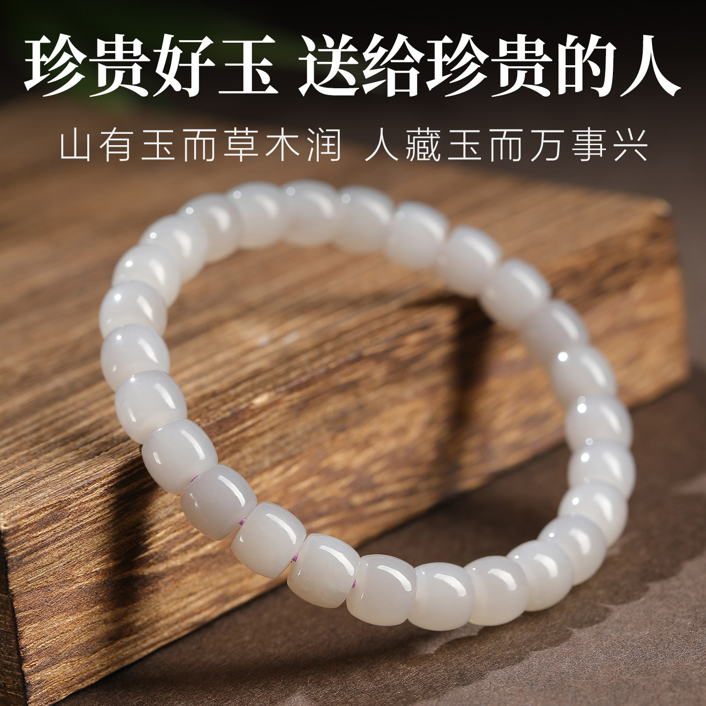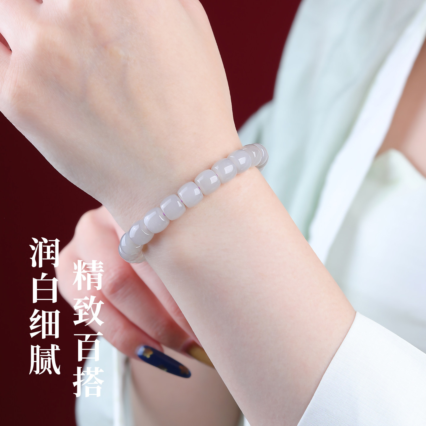 官方旗舰店天然和田玉烟紫玉手串女手饰玉石单圈手链轻奢精致小众