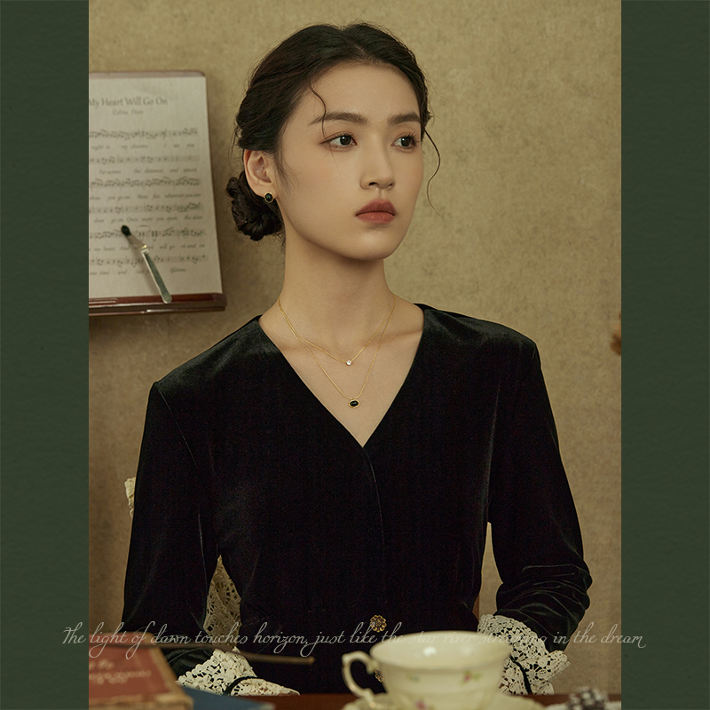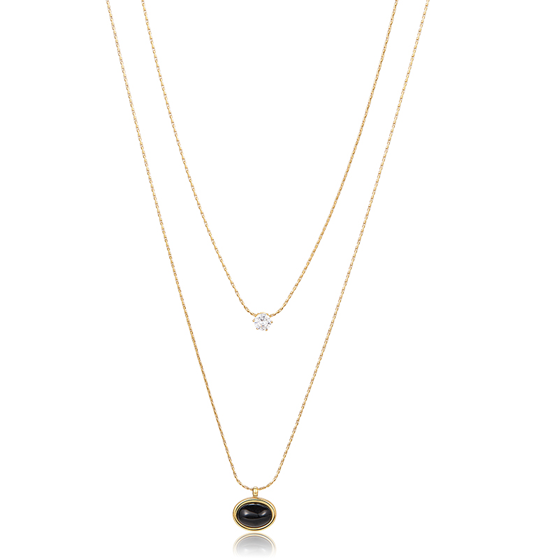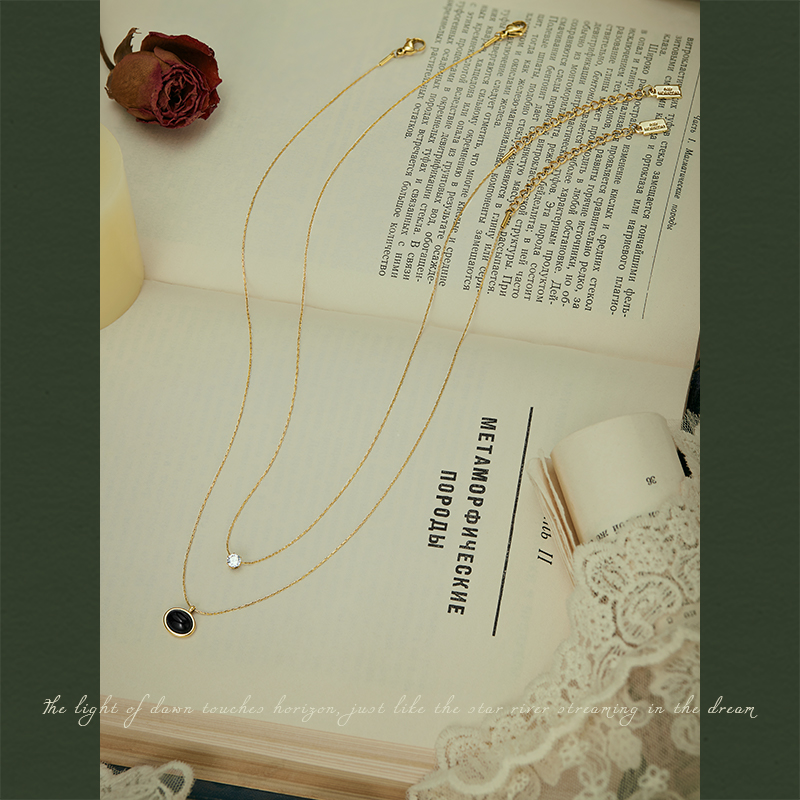 AIR-HORIZON法式双层叠戴项链女2024新款轻奢小众复古玛瑙锁骨链