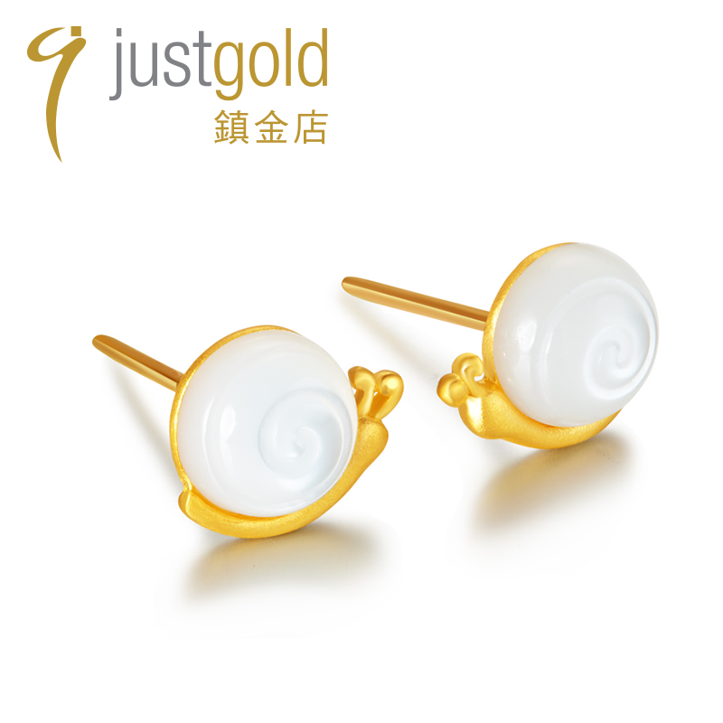 justgold镇金店贝母蜗牛黄金足金耳钉耳环(含耳堵)1304761Y