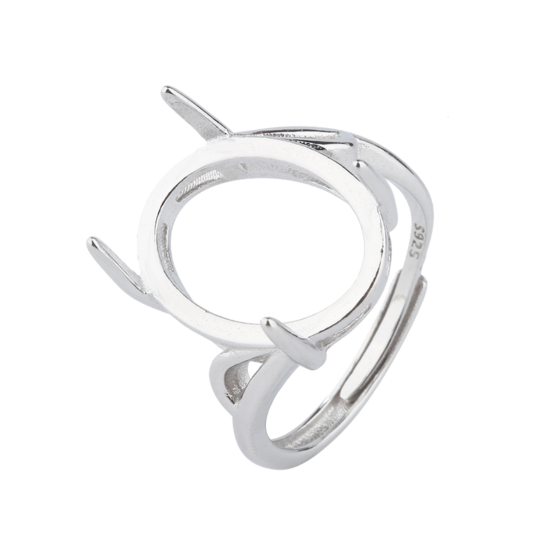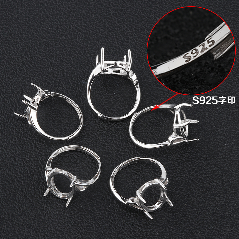 S925纯银戒指求婚开口介指日韩饰品简约活口男女情侣镶粘宝石空托