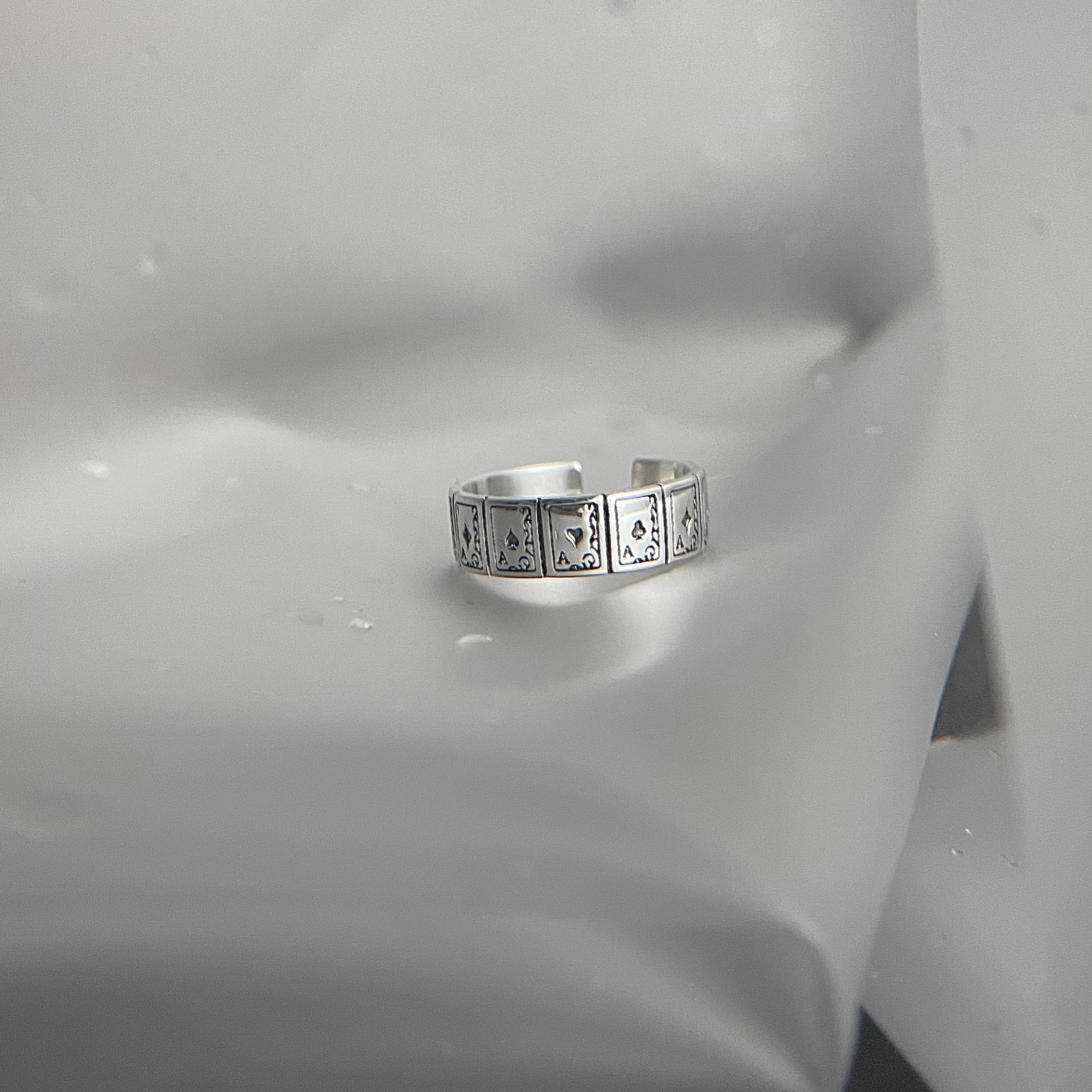 扑克牌戒指男女潮通体纯银S925复古ins冷淡风设计感原创指环配饰