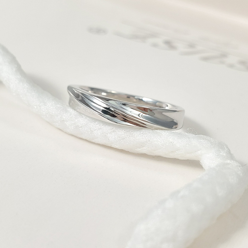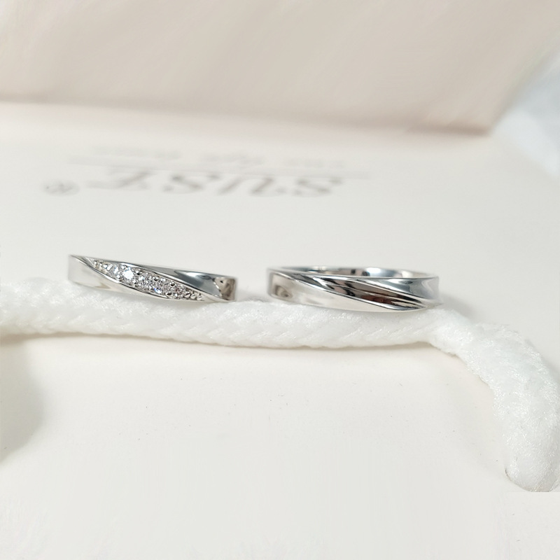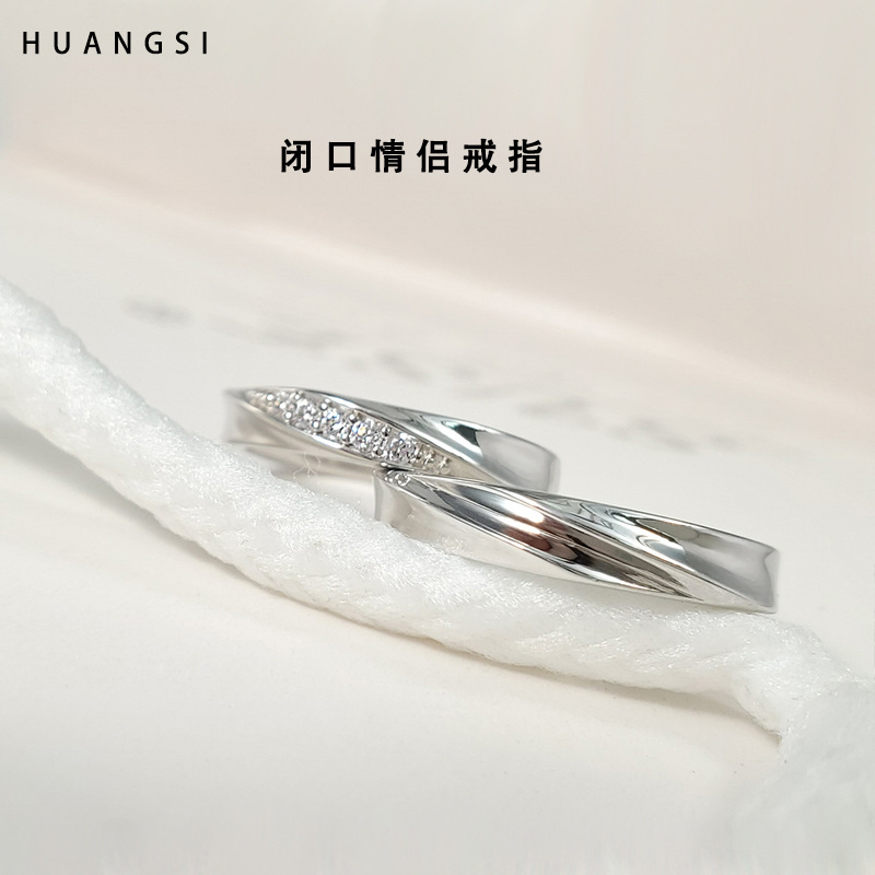 s925银闭口共渡爱河情侣戒指一对男女双扭纹对戒小众设计指环简约