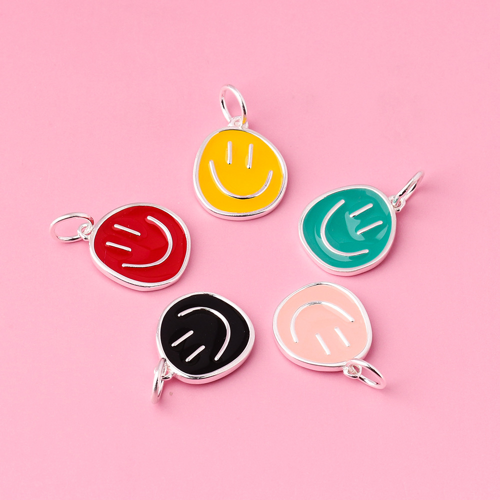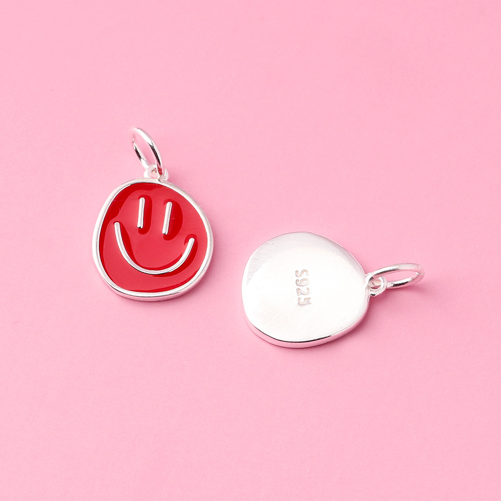 滴胶彩色笑脸吊坠s925银彩虹色不规则笑脸挂件ins风串珠手链配件