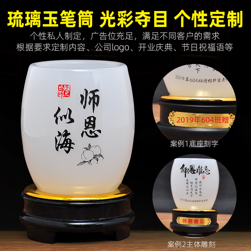 琉璃师恩笔筒摆件教师节送v老师的礼物退休纪念品创意摆设定制礼