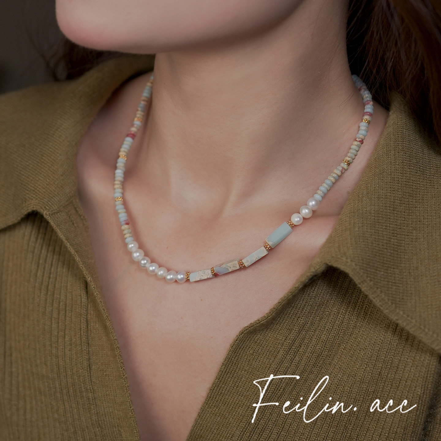 《方圆之韵》独特天然石淡水珍珠串珠项链女高级感轻奢锁骨链颈链