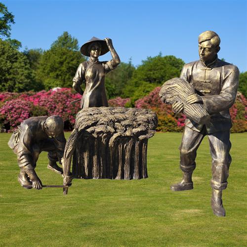 玻璃钢铸铜雕塑农耕文化传统人物雕像公园广场草坪景观装饰摆件