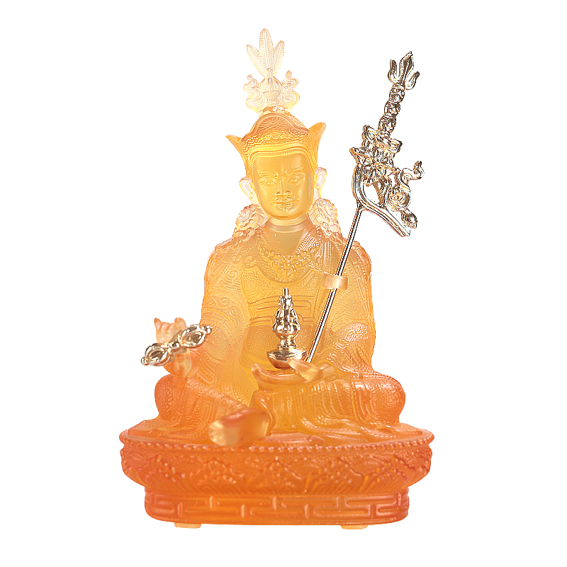 琉璃莲师佛花生像藏式黄色小号像莲花底座居家客厅桌面摆件礼盒装