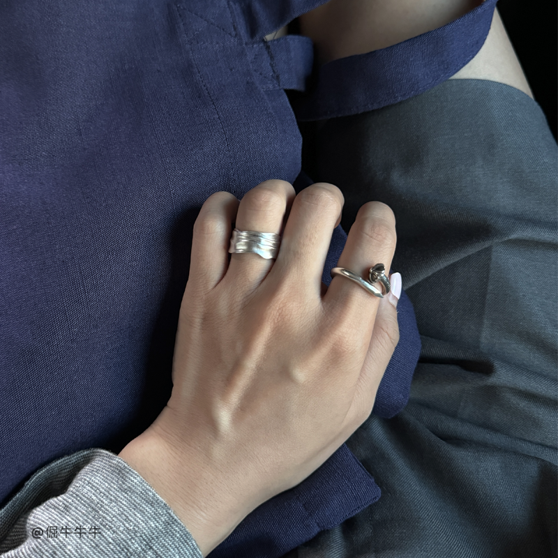 ON ONES OWN「Wave·海浪系列」海浪戒指925银哑光小众大气高级感