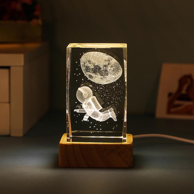 发光水晶方柱小摆件卧室桌面实用走心生日礼物送女生男朋友闺蜜