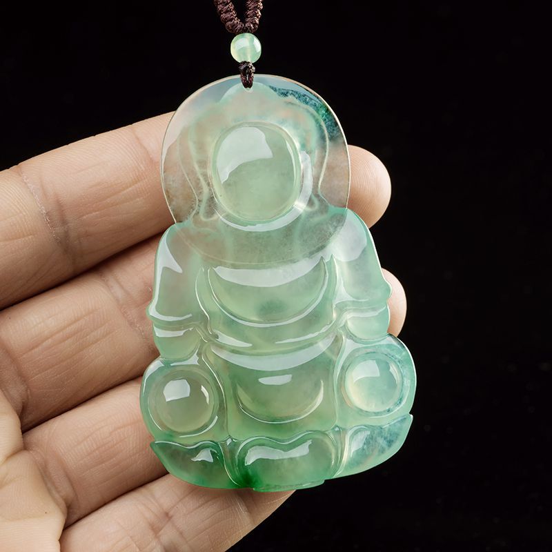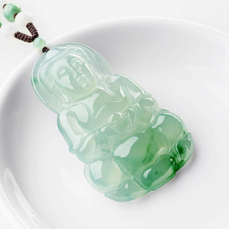 速发翡翠观音吊坠男款玉佩高冰种飘花玉石A货珠宝