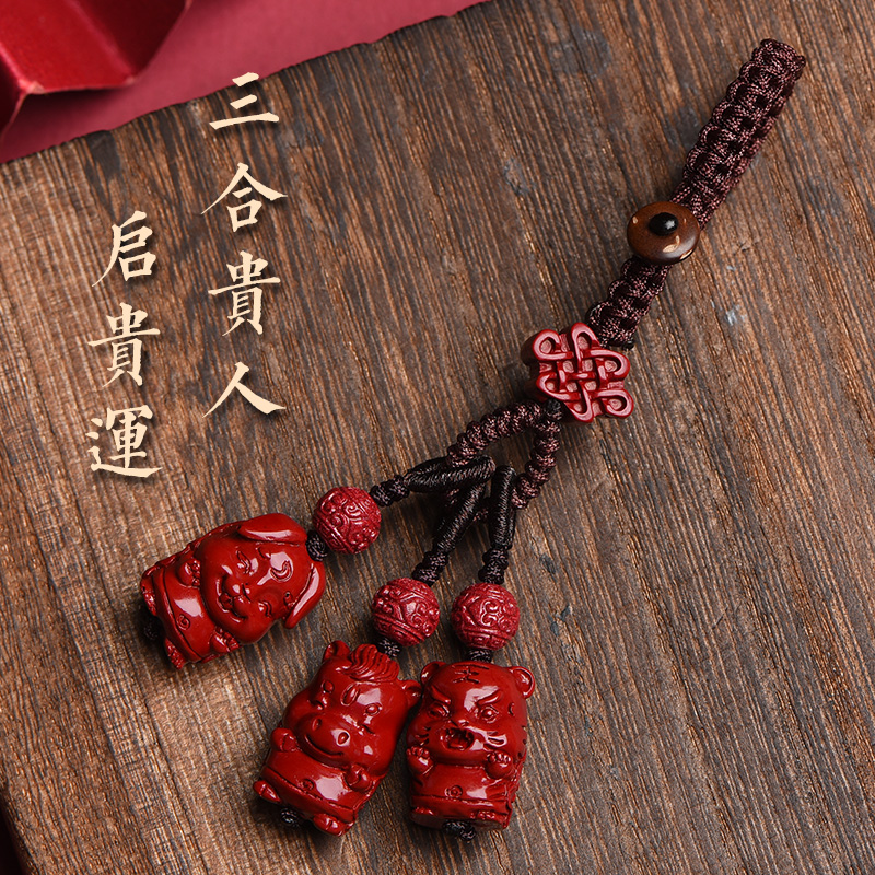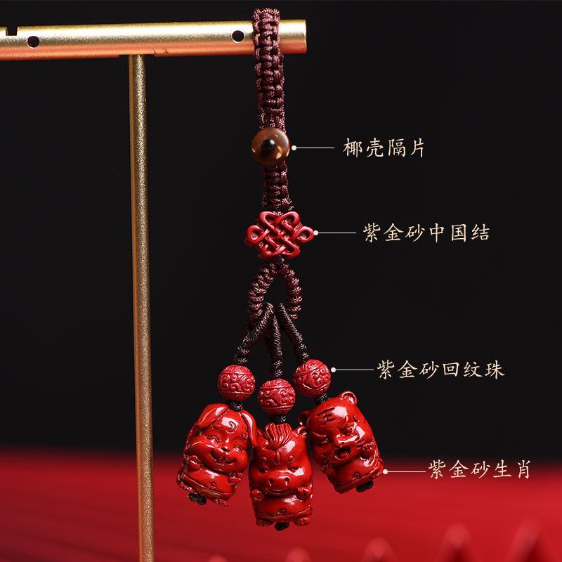2025朱砂生肖三合六合挂件本命年属蛇鸡虎吉祥物钥匙扣护身符吊坠