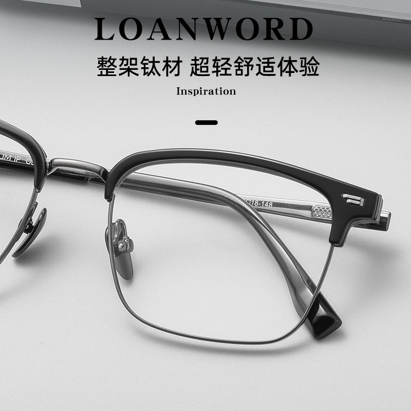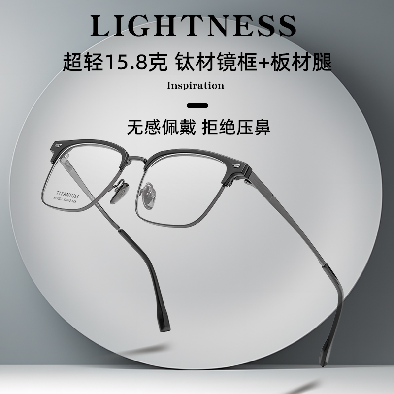 钛架斯文眉线框近视眼镜商务男款专业网上配镜近视可配度数防蓝光