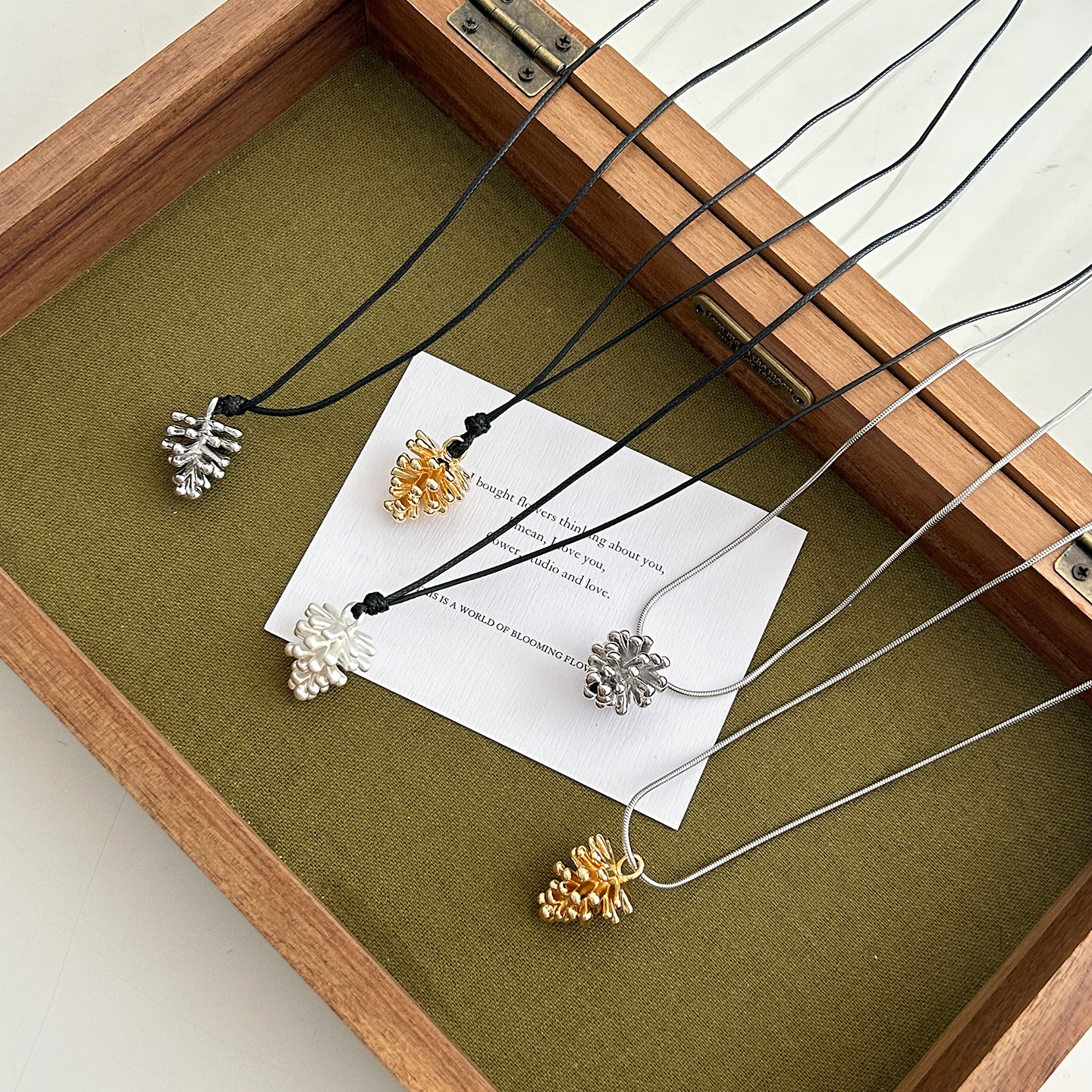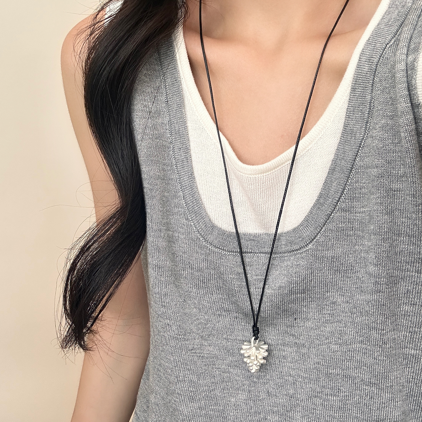 不规则幸运松果长款项链女时尚皮蜡绳小众设计高级感毛衣链配饰