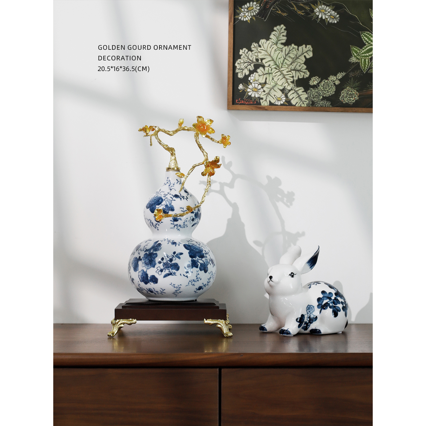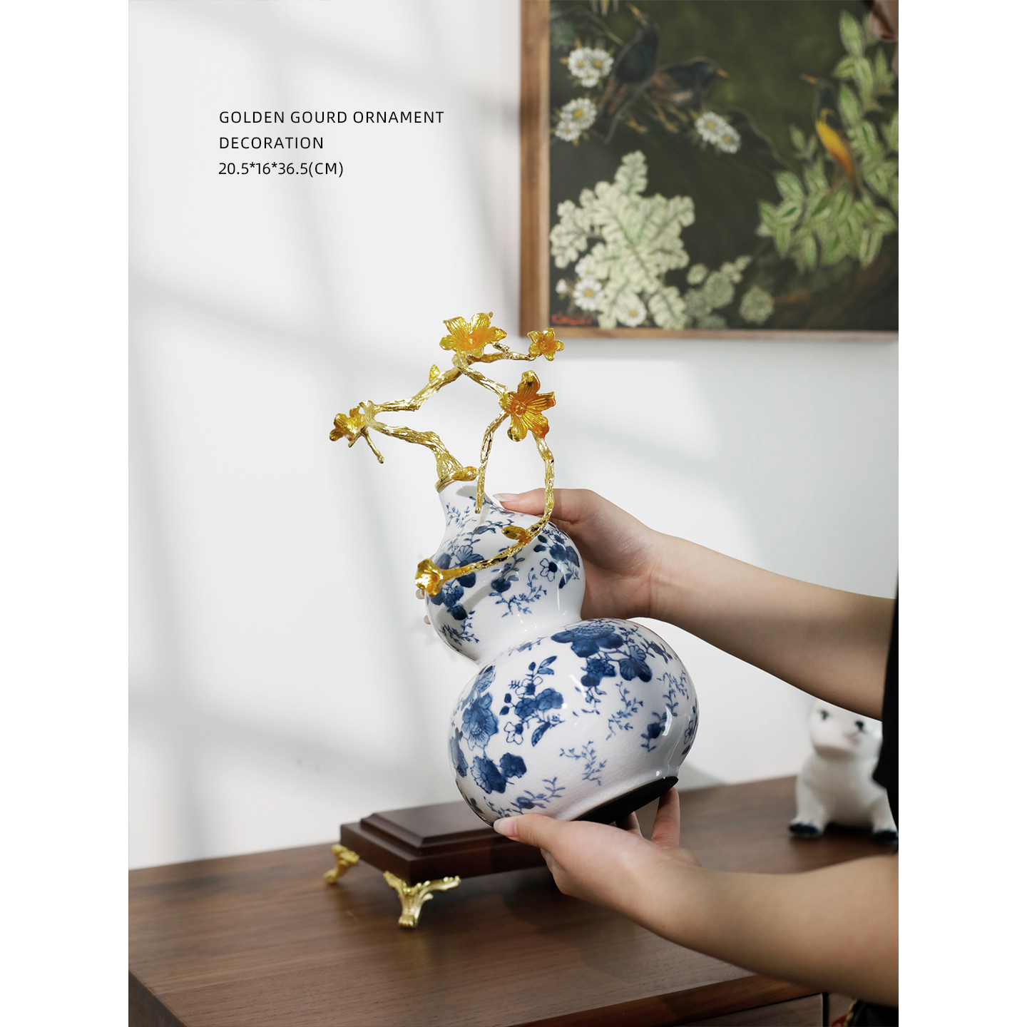 迷屿 新中式青花葫芦客厅酒柜聚财纳福陶瓷工艺品桌面装饰摆件