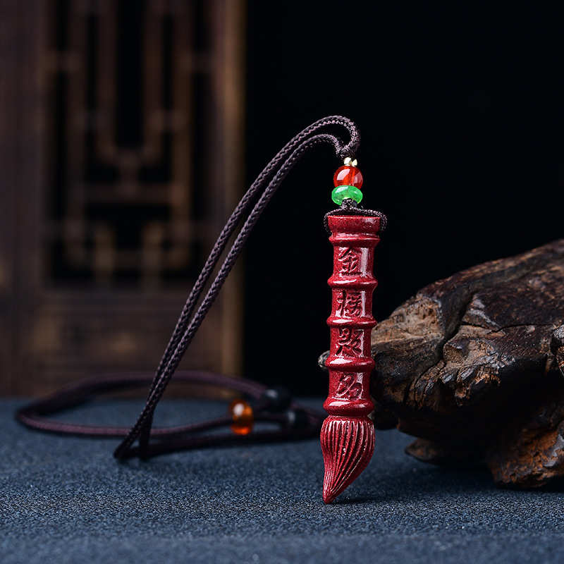 原矿石朱砂毛笔吊坠高含量晶体金榜题名节节高升男女文昌笔项坠