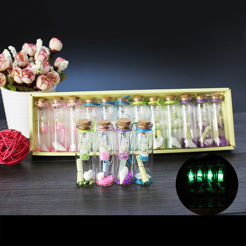 一盒12只木塞吊坠许愿瓶夜光沙漂流小瓶玻璃瓶装饰发光心愿瓶礼品