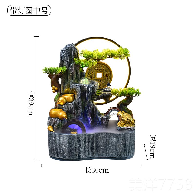 高档流室水摆件循水高山风水轮招财桌面假山客厅办公环财生开业送
