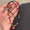 石榴红吊坠复古串珠项链配饰女秋冬毛衣链轻奢小众高级感颈链饰品