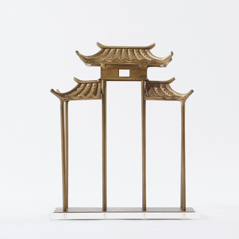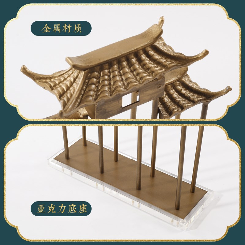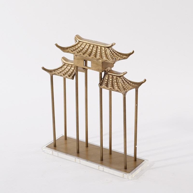 新中式建筑摆件金属牌坊门牌样板房间书房软装饰品客厅玄关柜摆设