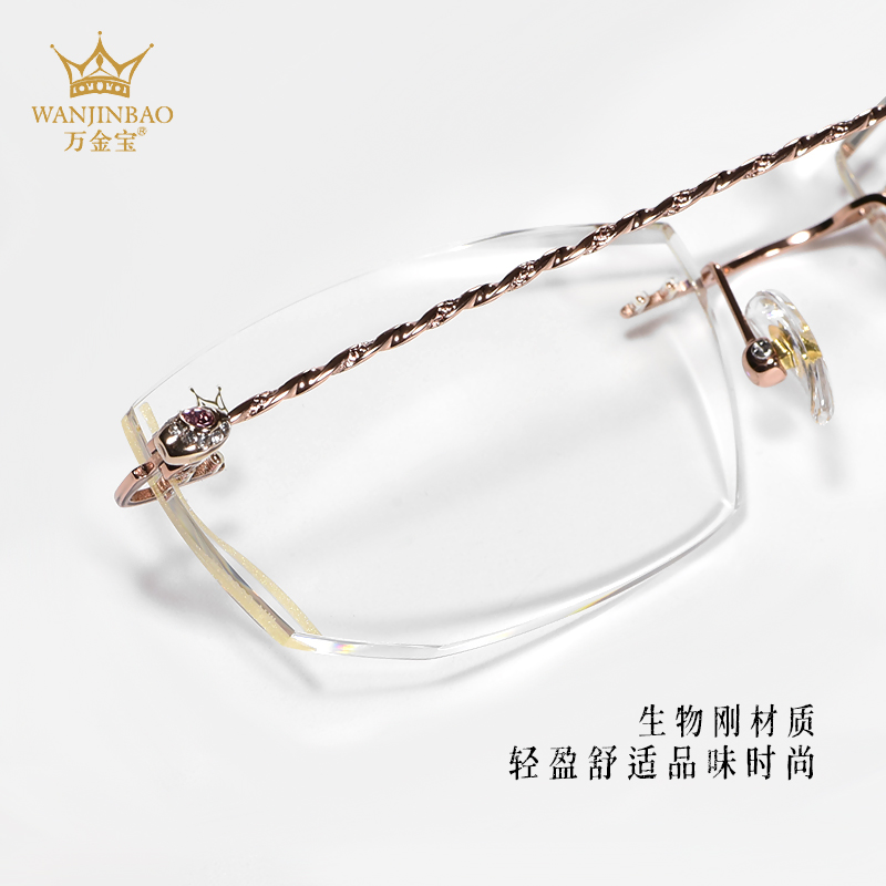 万金宝女士无框眼镜窄框高度近视节节高升镜腿生物刚超轻MA50551