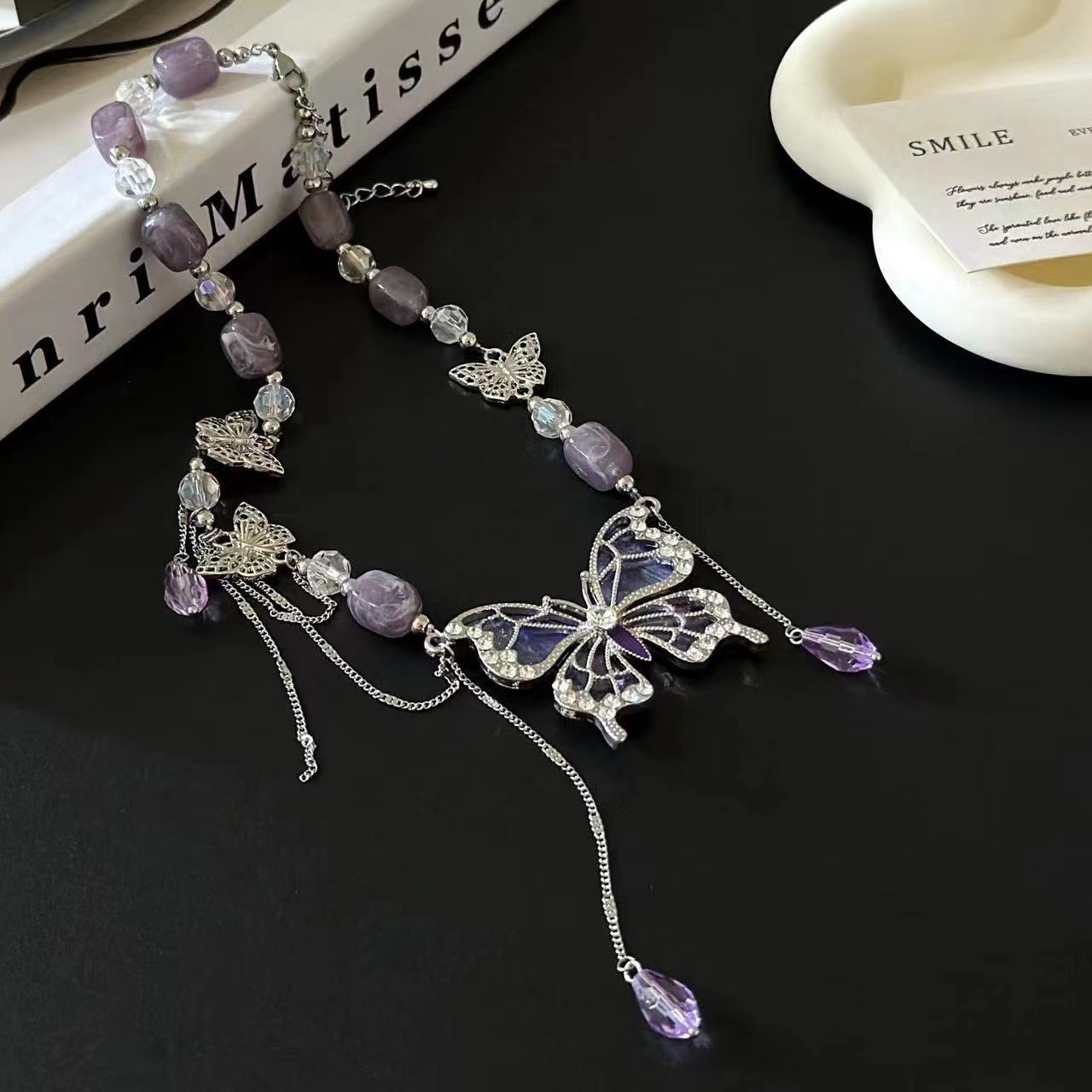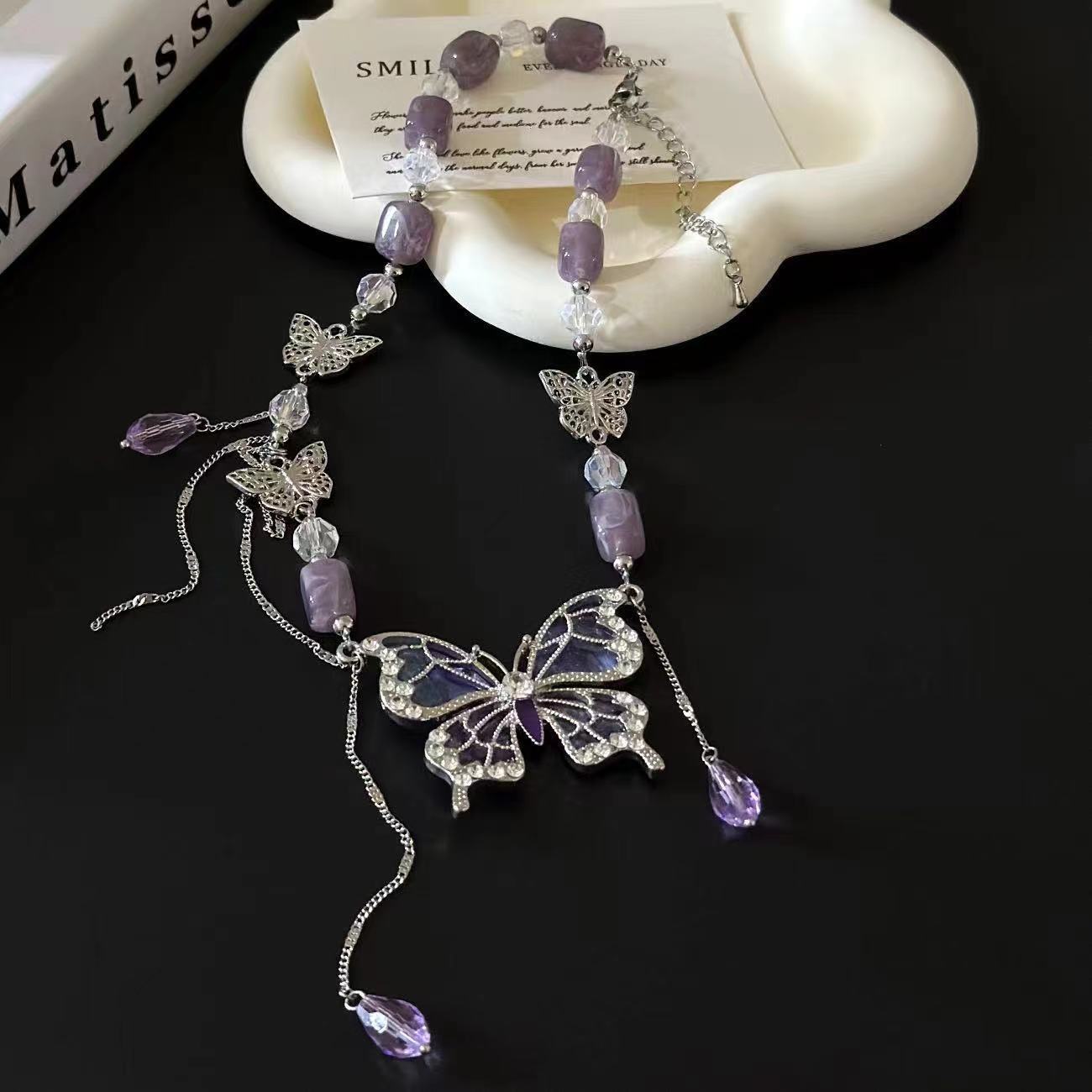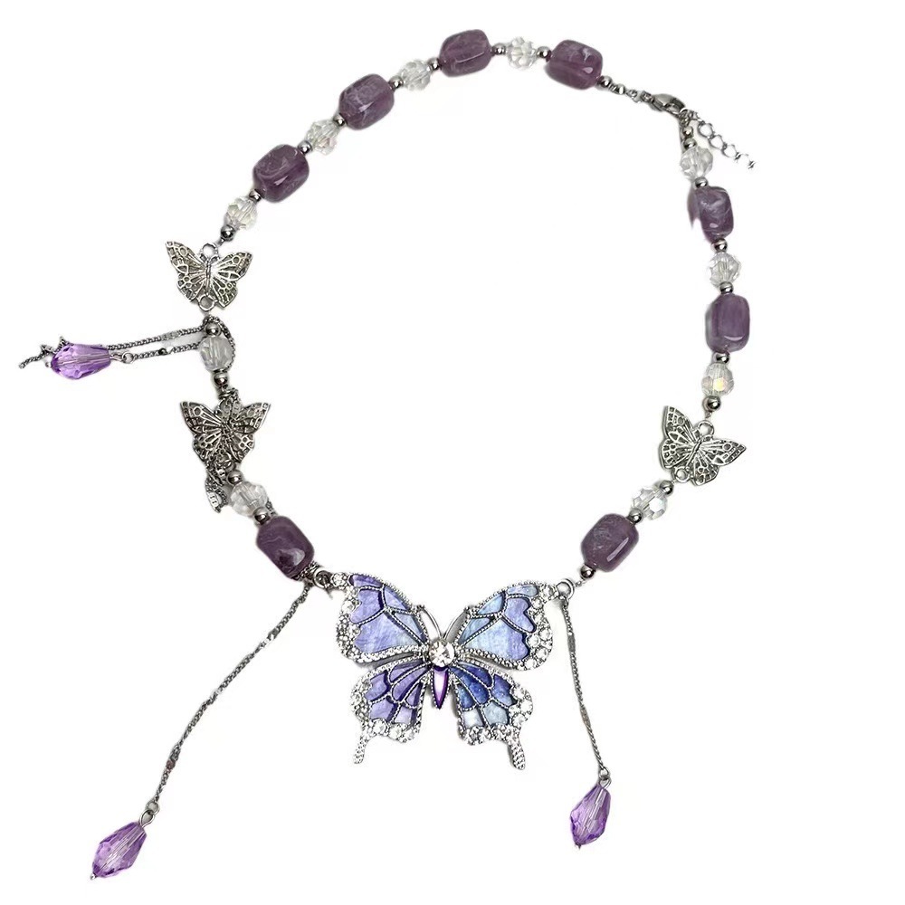 超纯欲紫色蝴蝶流苏项链多巴胺水晶气质甜美颈链个性设计感锁骨链