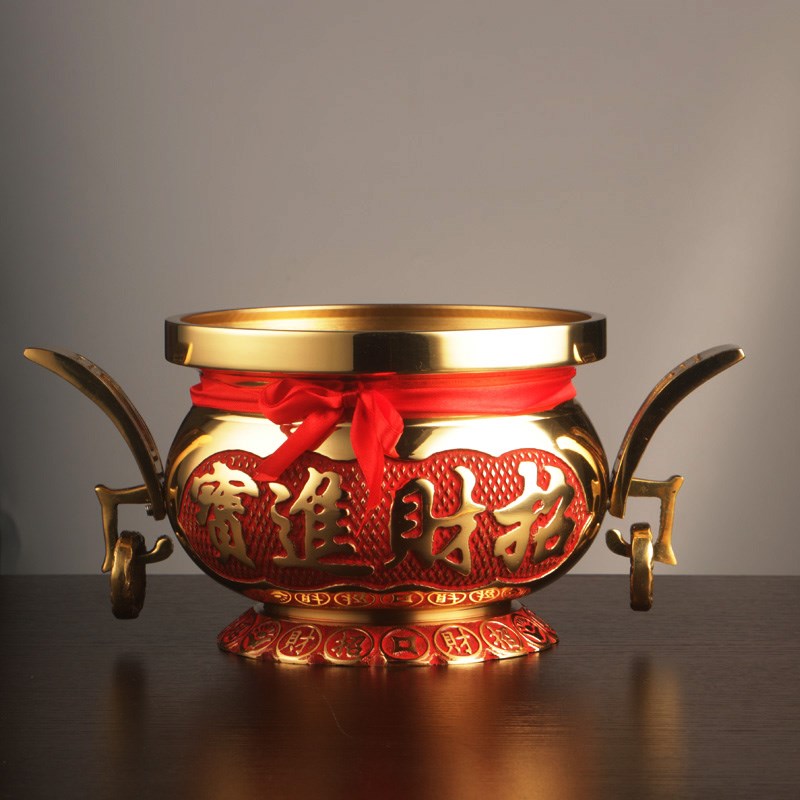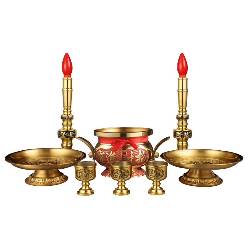 速发纯黄铜双电金钱香炉套装加奉招财供耳插香家用室内酒杯耳灯